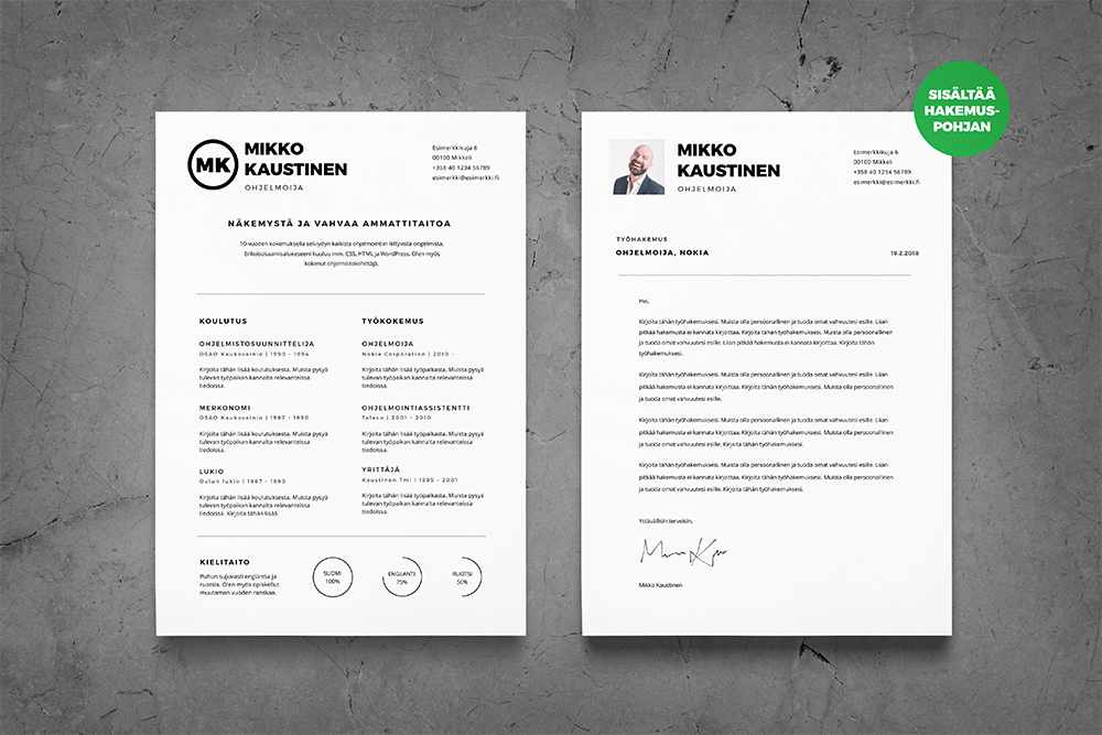 Saat kaupan päälle CV-pohjan kanssa yhteensopivan työhakemuspohjan